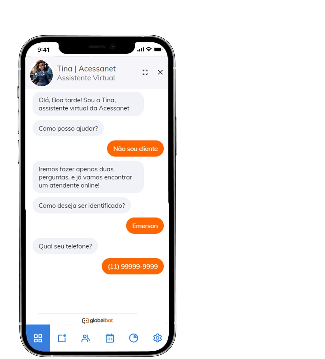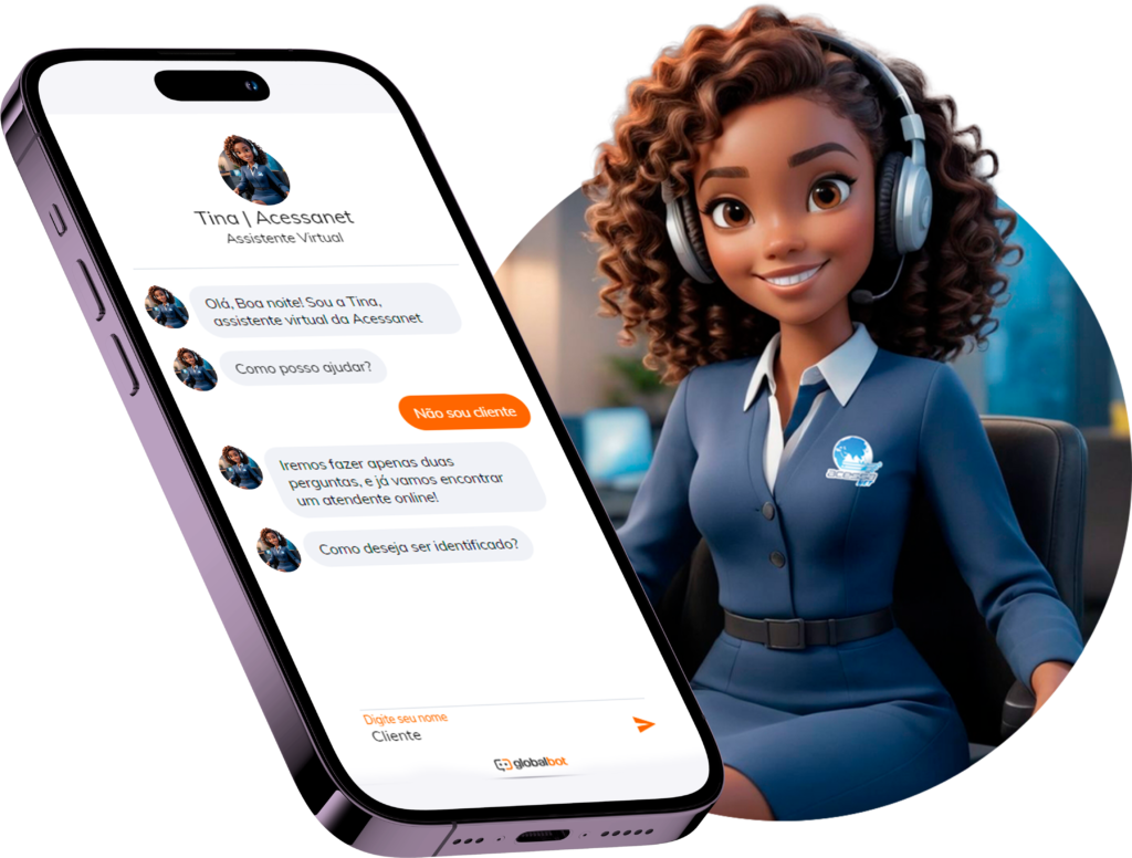 Ela também pode ajudá-lo(a) com uma variedade de outras solicitações, como atualização de dados cadastrais, informações sobre sua conta e serviços, e muito mais. Tudo isso disponível 24 horas por dia, 7 dias por semana, para proporcionar a você a melhor experiência possível com a Acessanet.