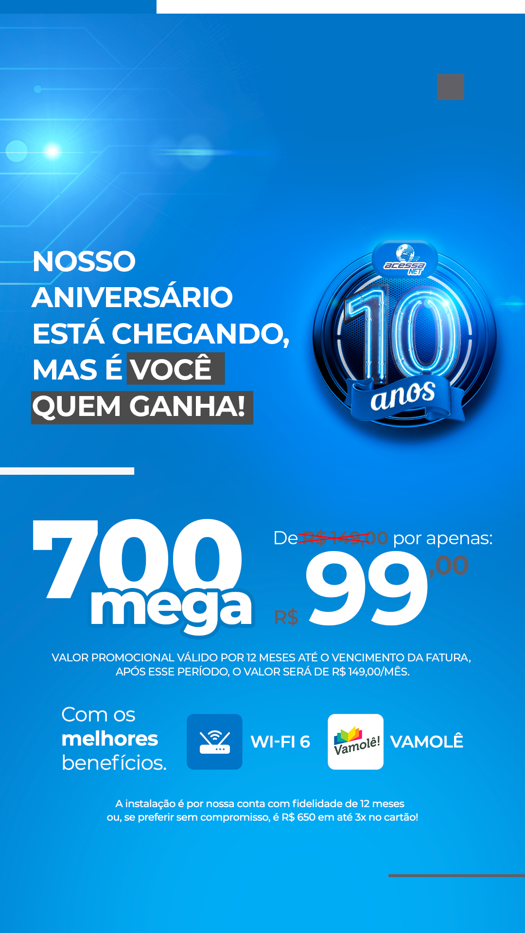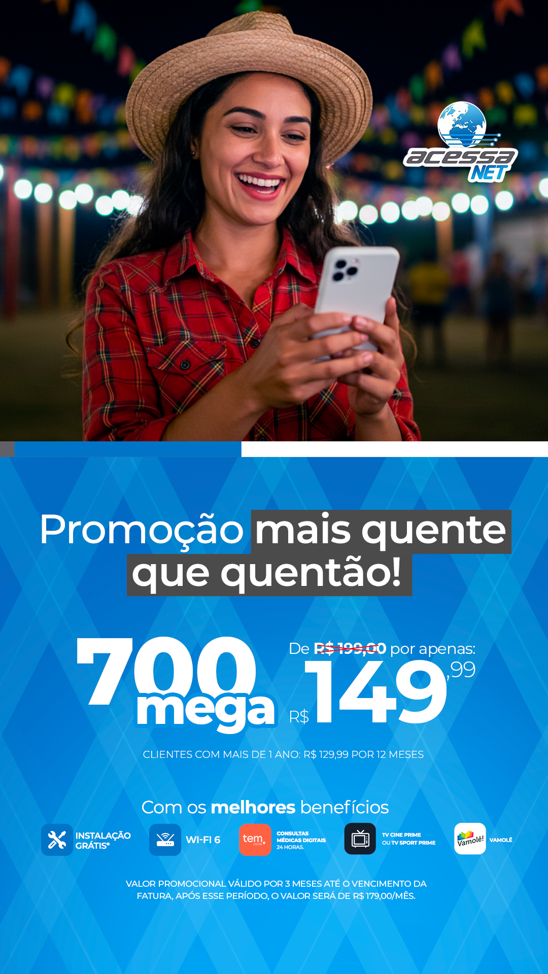 Com tecnologia de ponta, suporte excepcional e planos flexíveis, a Acessanet se destaca como o provedor de internet ideal para todas as suas necessidades.